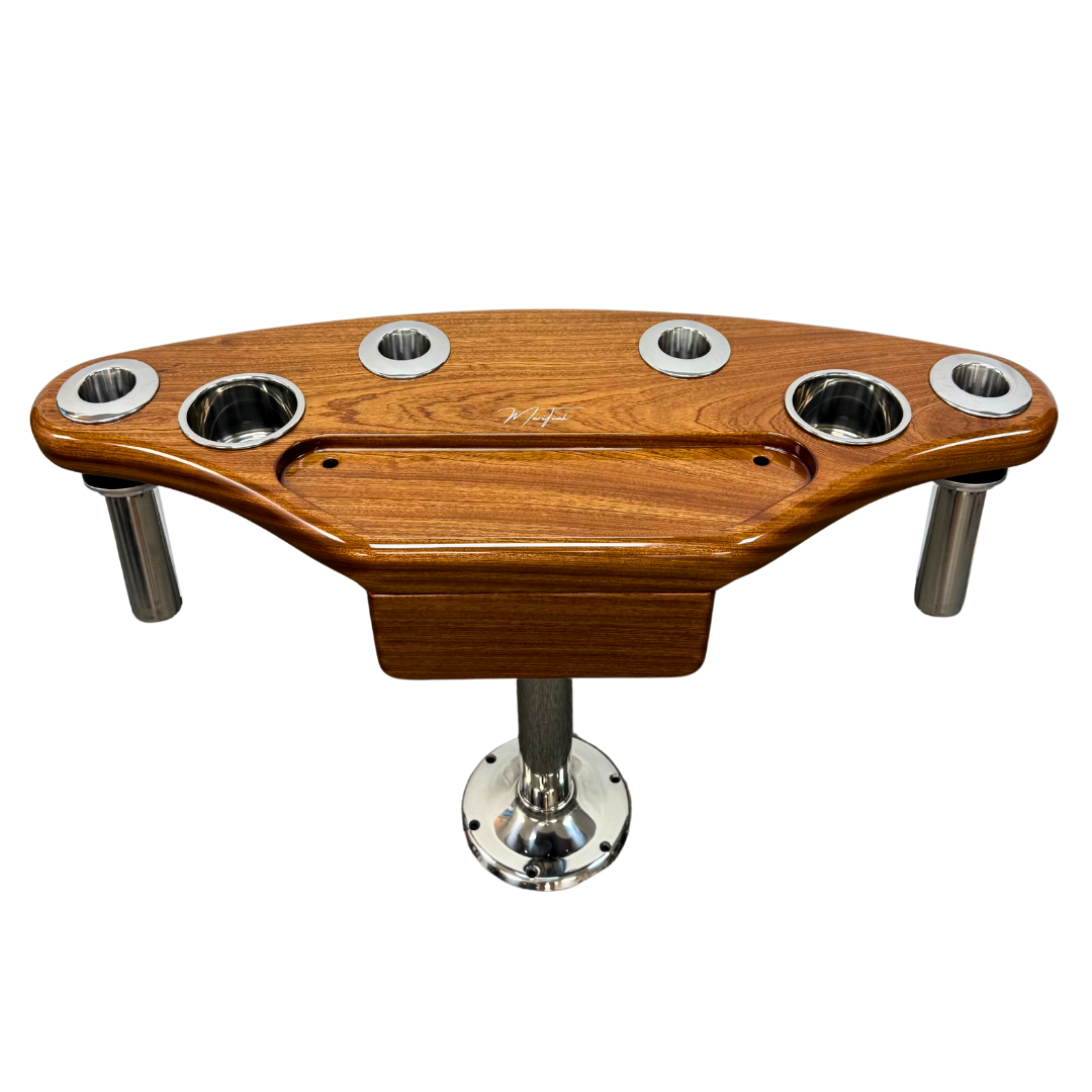 Available in Burmese Teak or African Sapele, this launcher features standard (Coastal) Gemlux rod holders, with the option of premium boltless Gemlux rod holders.