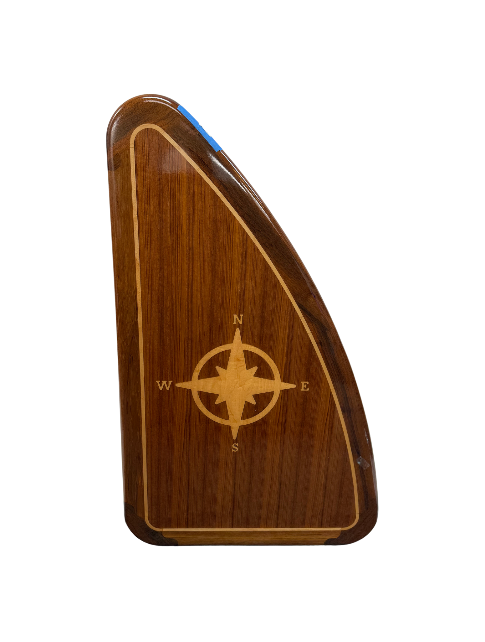 Bowed Triangle Teak Table with Compass Rose Inlay - High Gloss Finish