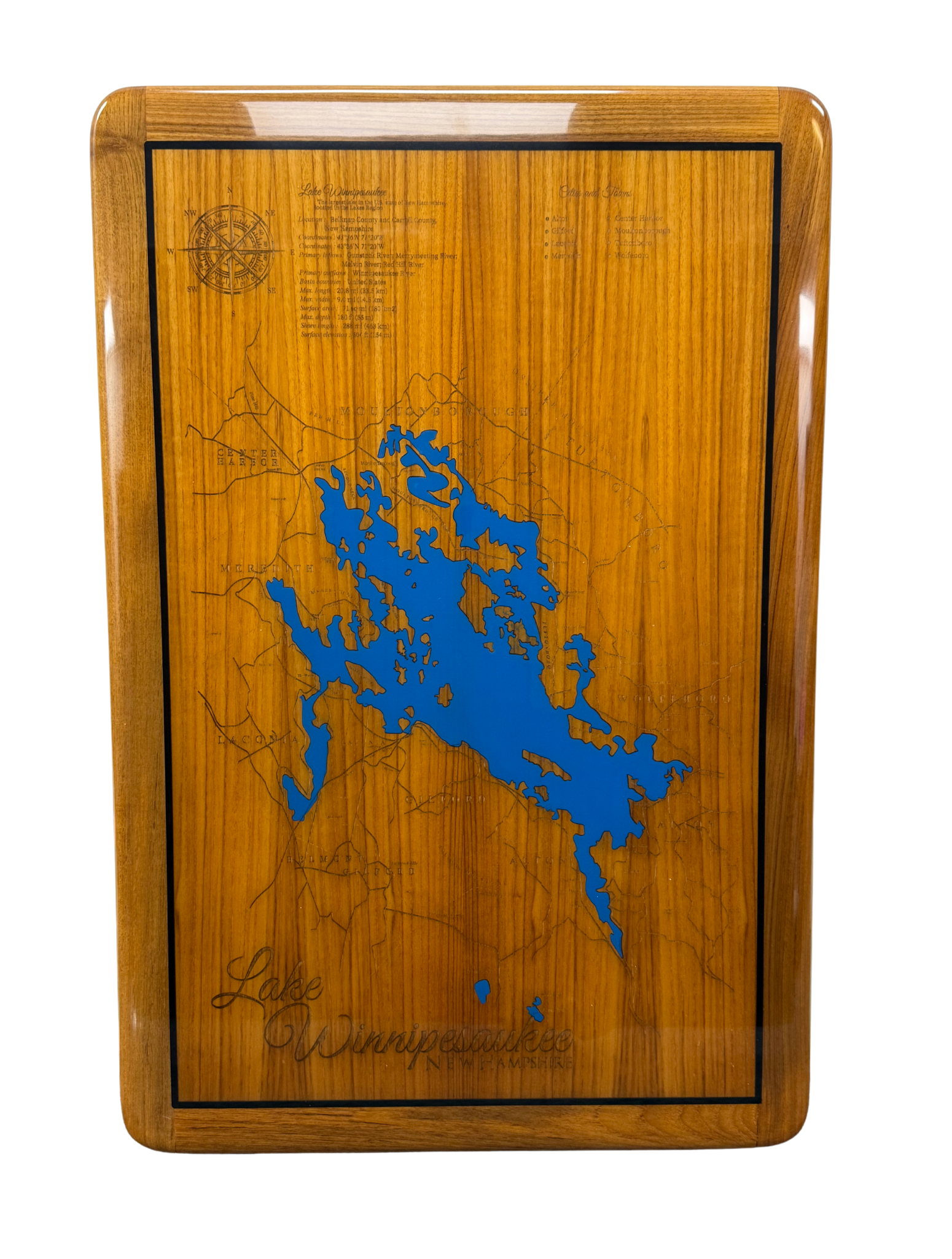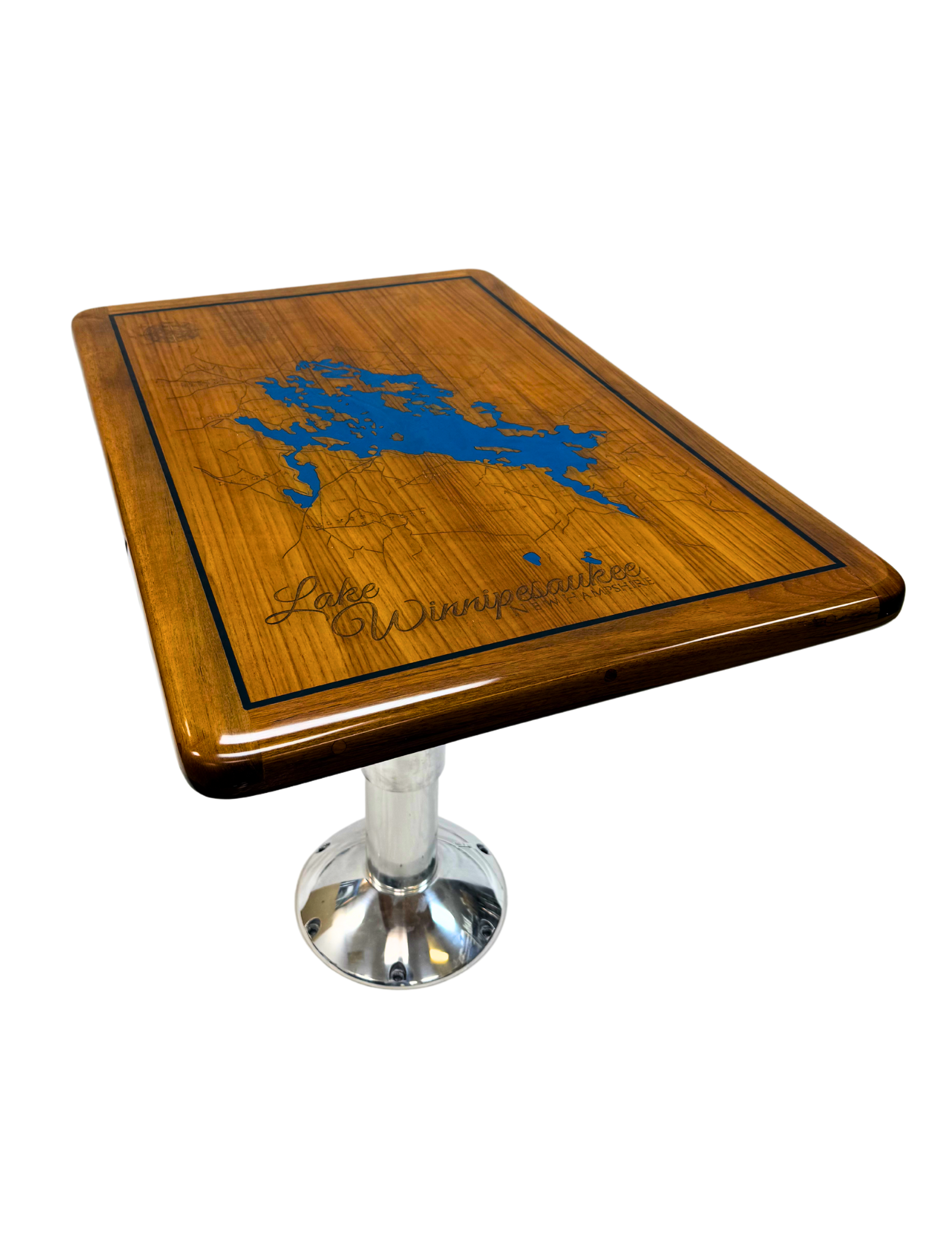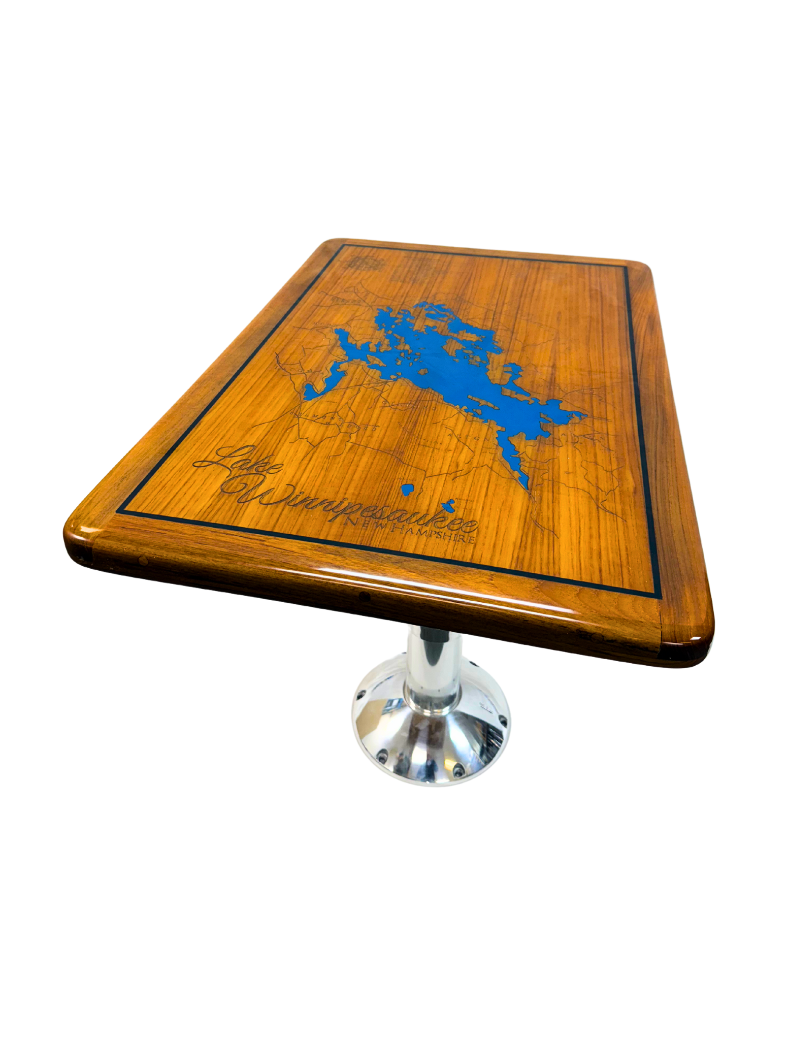 Rectangle Teak Table with Lake Winnipesaukee Inlay - High Gloss Finish