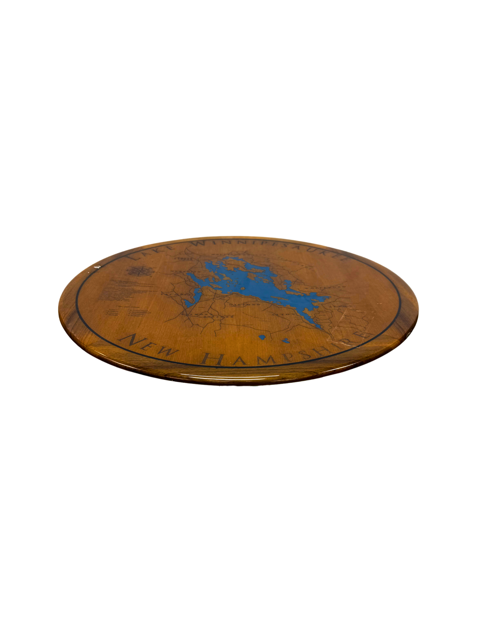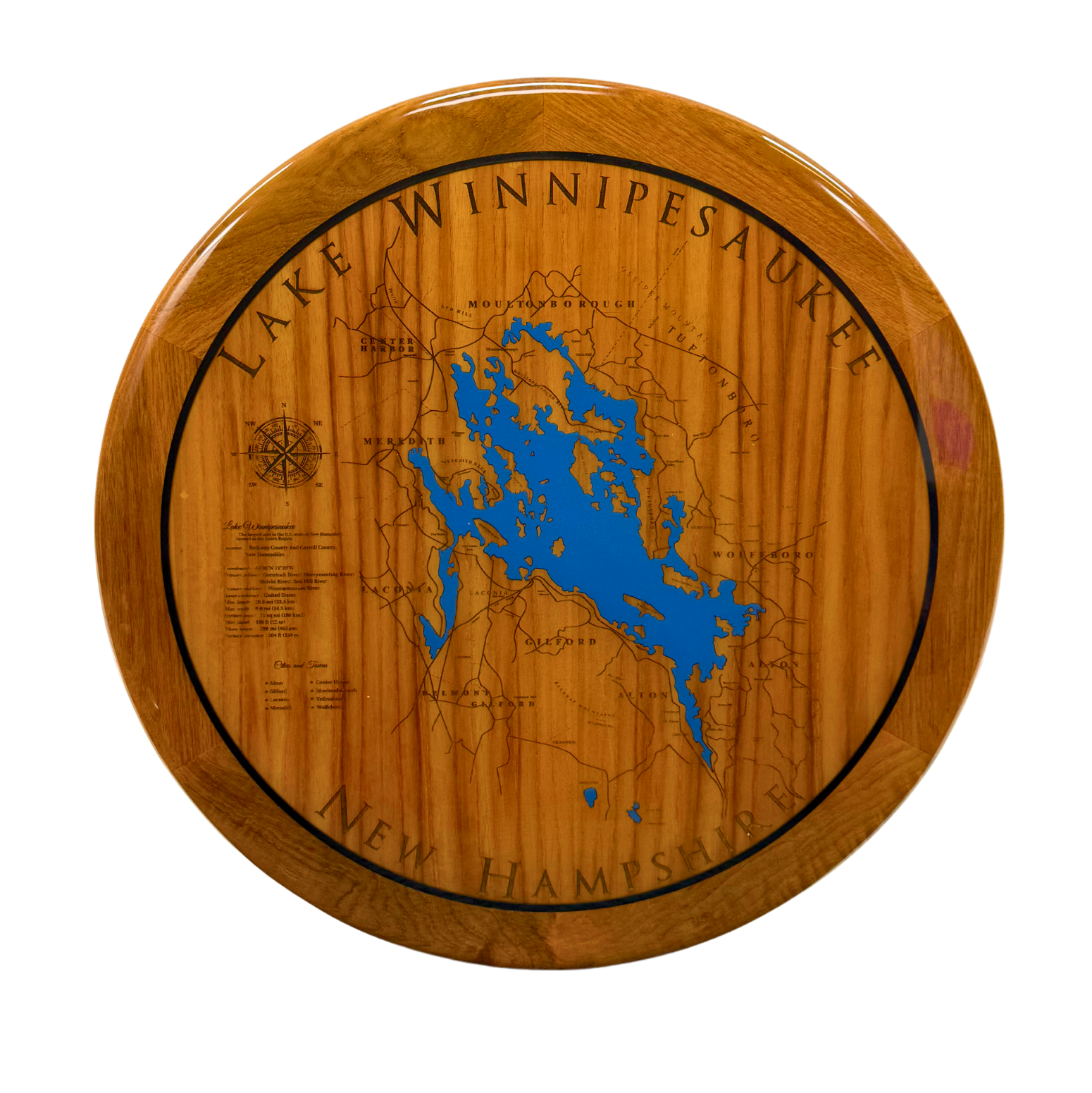 28" Round Teak Wall Hanger with Lake Winnipesaukee Inlay