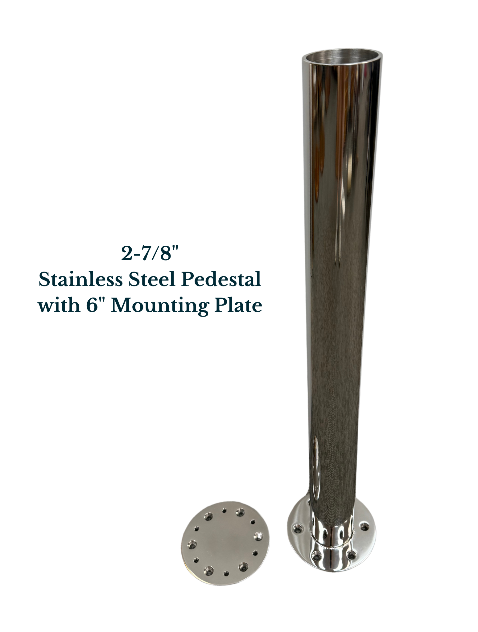 Our custom metal shop can make any size pedestal and/or mounting plate you may need to fit your boat.