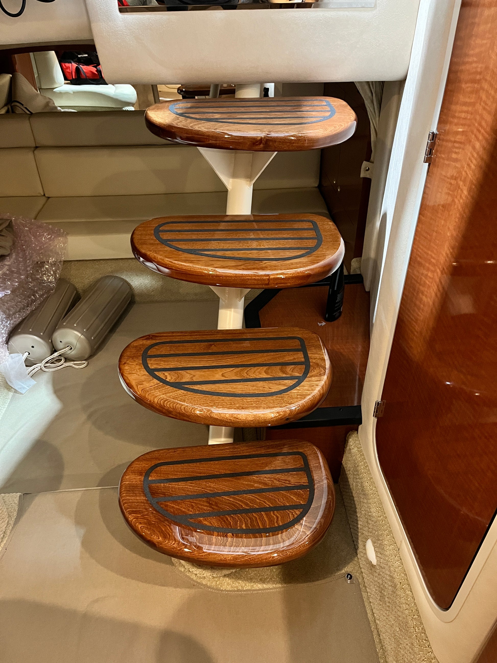 These steps are a beautiful addition to the cabin of the 320 or 340 Sundancer. Get rid of those ugly carpet steps and upgrade the look and feel of your Sundancer!