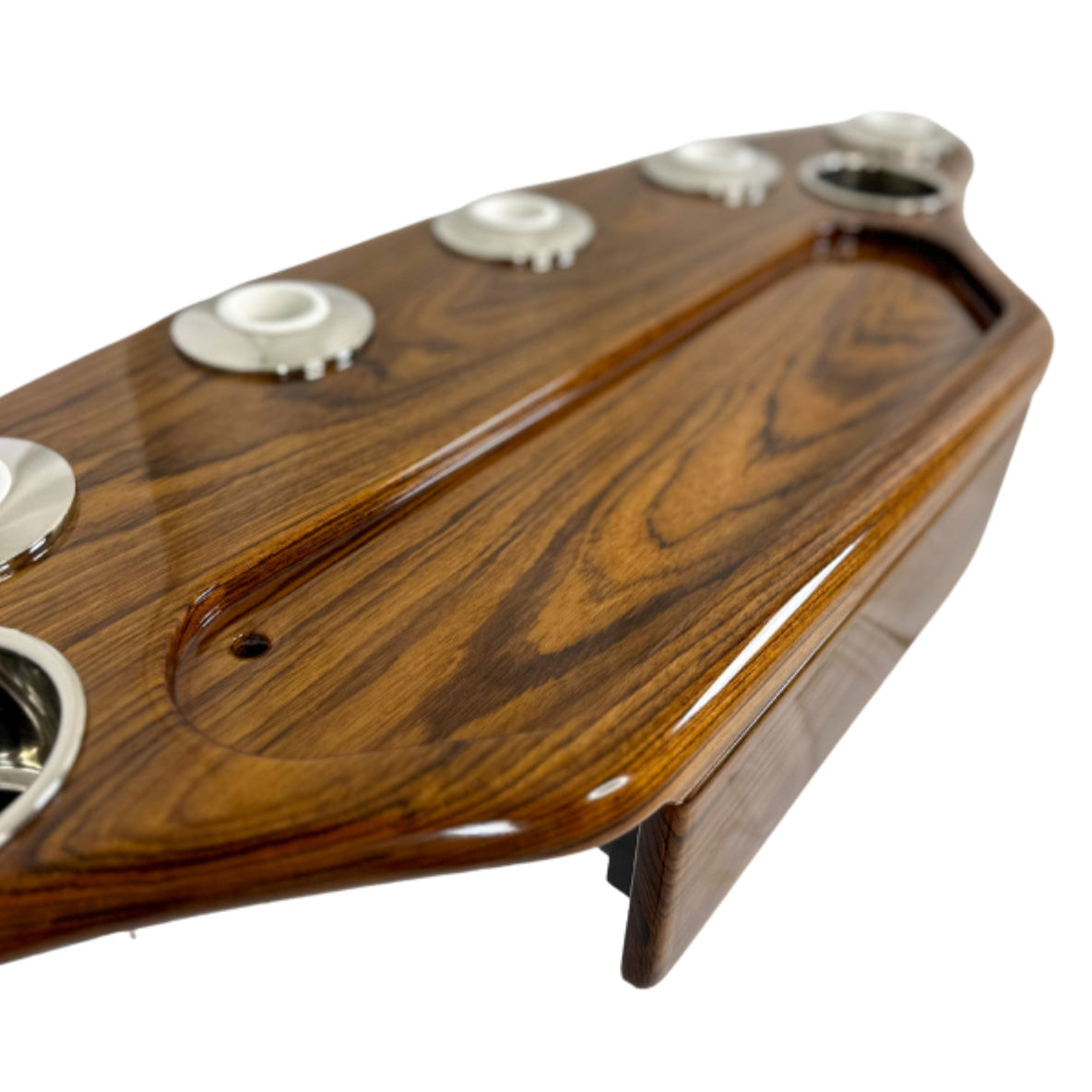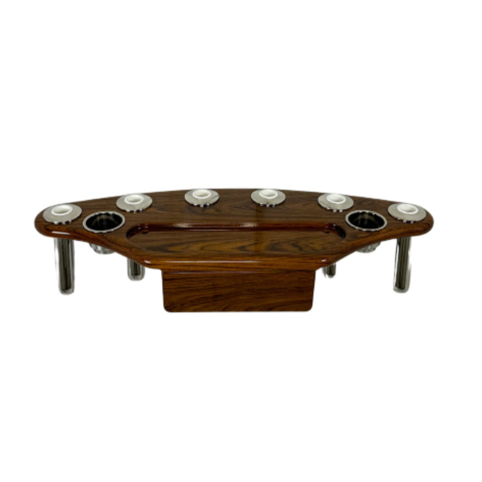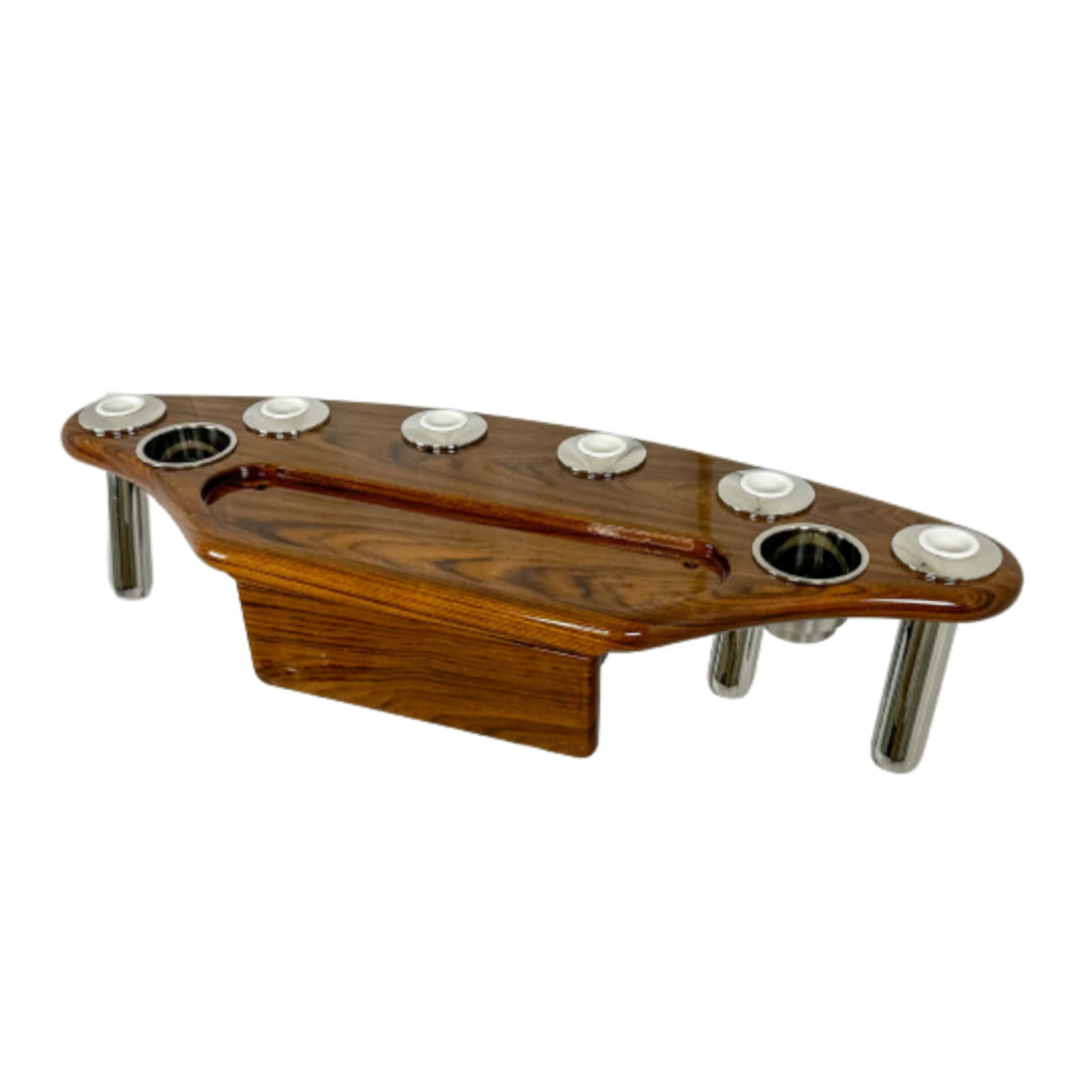 Available in Burmese Teak or African Sapele, this launcher features standard (Coastal) Gemlux rod holders, with the option of premium boltless Gemlux rod holders.