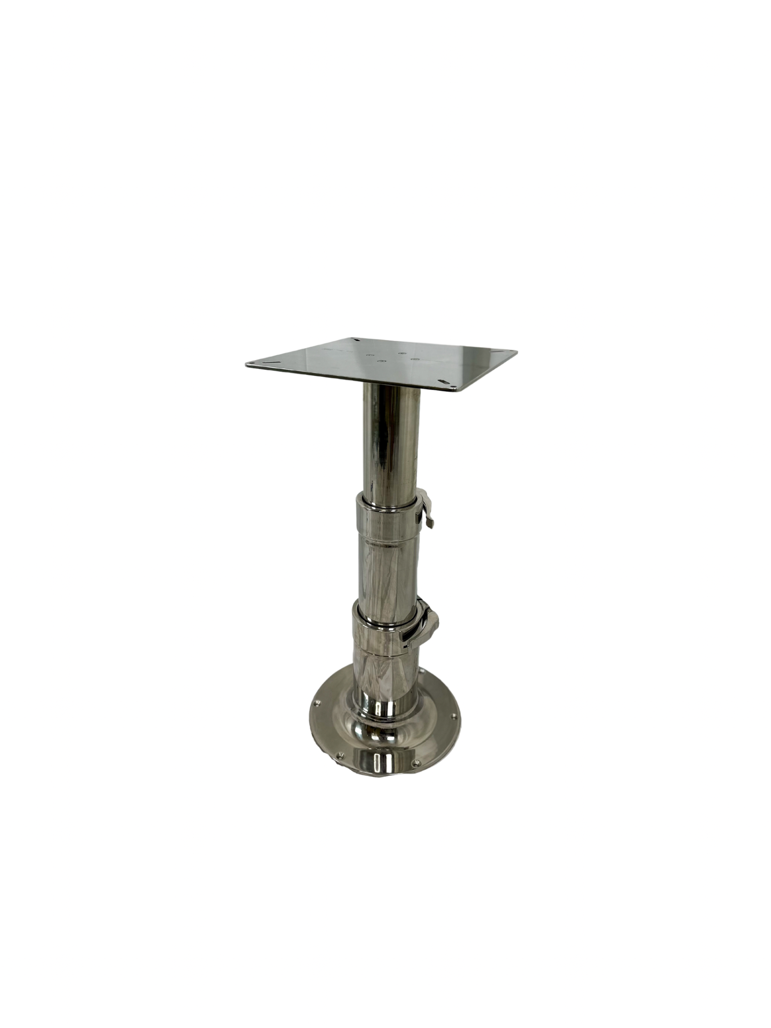 Constructed from robust stainless steel, this pedestal offers smooth adjustments between 14" and 28", effortlessly transitioning from coffee table height to dining table stature.